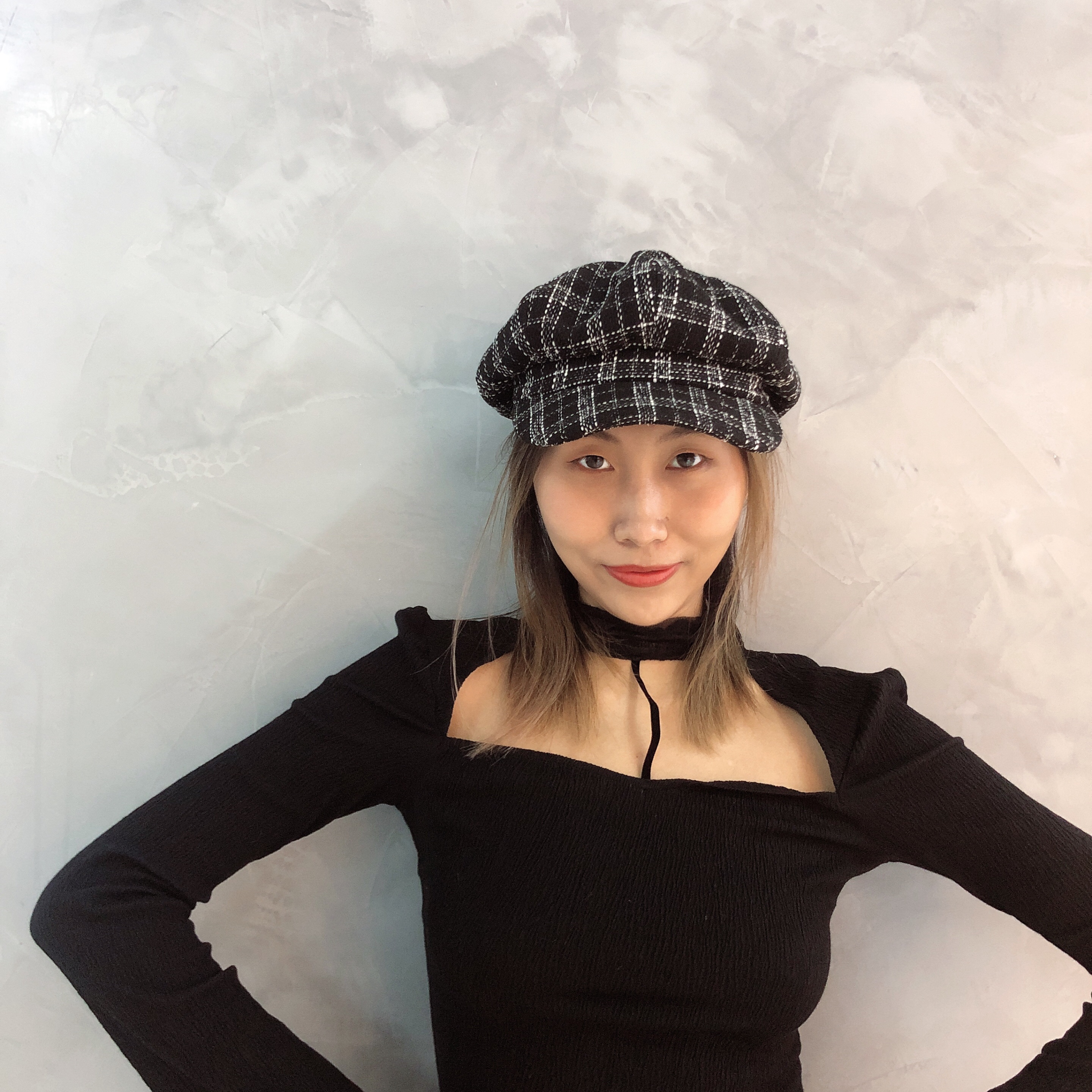 Kk Hat Japanese Black And White Checkered Octagon Hat Autumn And Winter New Everything Out Of The Street Fashion Student Hat Painter Hat Retro Broad Hat Industry